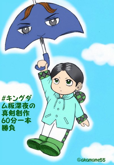 遅刻したうえ、中途半端になっちゃいましたが・・・。 傘で空飛ぶ慶舎。 #キングダム版深夜の真剣創作60分一本勝負