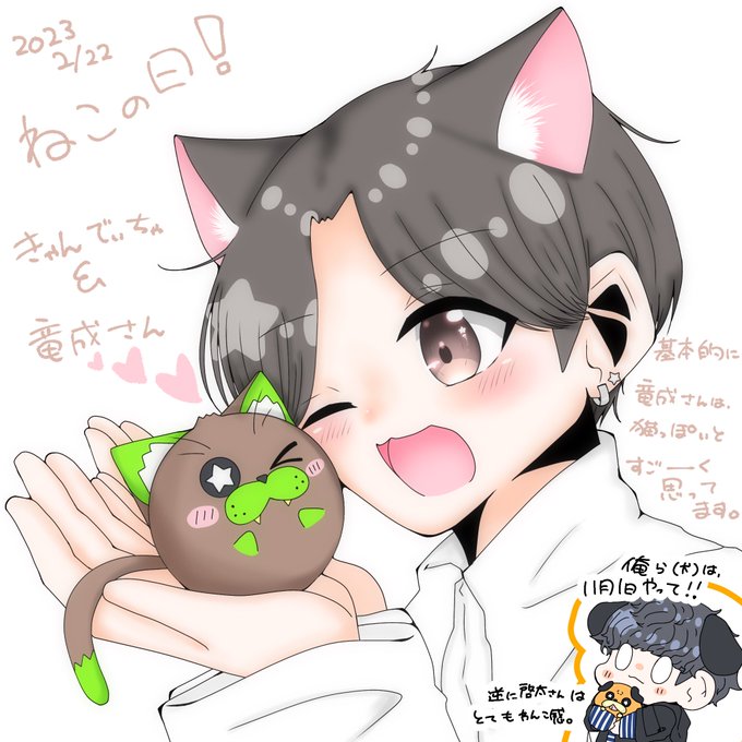 DAN☆DANのマスコットキャラクターのキウイねこちゃん改めきゃんでぃちゃんと、基本的な言動が猫っぽいな〜と私が個人的にずっと思ってる竜成さんのファンアです🐈🐾