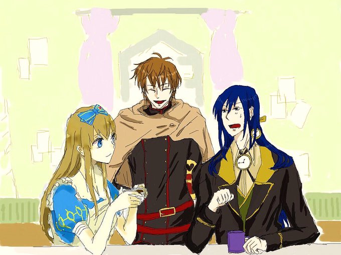 今日(っていうかもう昨日)はあらーむさんと絵茶させていただきました!絵茶久々だったので、とても楽しかったです! エース、ユリウス→あらーむさん アリス、背景→私