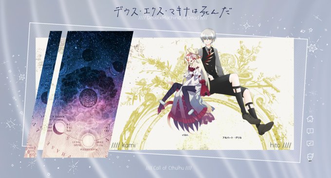 ▷CoC『デウス・エクス・マキナは死んだ』 KP:便座掃除 PL:HO1/カミ→茜(イロハ) HO2/ヒト→まゆき(アルバート・ダリル) 両生還優勝エンドですあ~~~~デ死、サイコー!!!!!!(CM?)可愛い命たち えらいたち すこやか KPをボコりもしましたが本当に良いシナリオだった……愛だ……