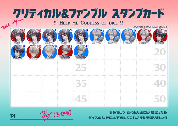 ▷CoC『十二星座館殺人事件』 KP:うだびさん PL:(PC名省略) ♈いこだ ♉よしだ ♊いす ♋便座掃除 ♌るなぺけ ♍せと ♎太子 ♏まゆき ♐あくた ♑茜 ♒まち ♓柴 エンド3で終了 お疲れ様でした!楽しかった~山羊座、肌馴染み良 意外と世話焼きだったなチェシャ―