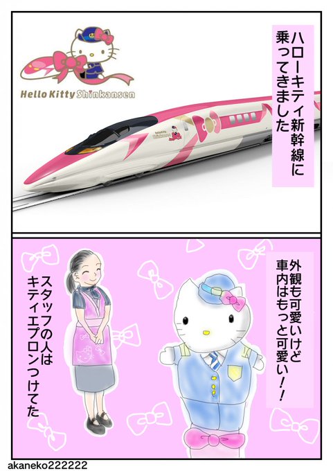 ハローキティ新幹線の内装レポート!可愛かった #漫画 #4コマ #4コマ漫画 #四コママンガ #ハローキティ #キティ #キティちゃん #ハローキティ新幹線 #新幹線 #ピンク https://t.co/ZGzVsgTyhG