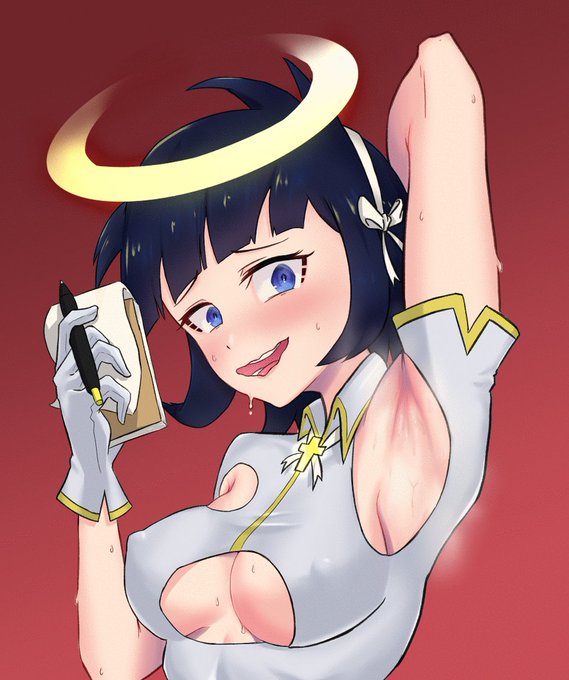 Trying this OC designing thing. She bring divine punishment to people that coom too much.