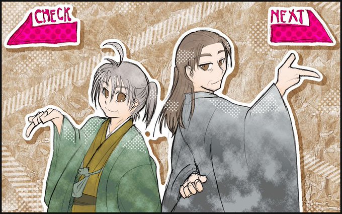 #これを見た人は2人組の画像を貼れ 蔵信さんと蠣信さん、マサピロとヨシピロ、ぴちとカン君、適山蘭斎。背中あわせがすきだね?