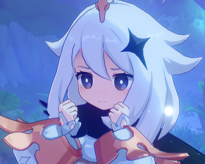 a primeira que eu n poderia deixar de falar pra jogar os shades é a paimon, isso pq alem dos cabelos brancos ela tem toda uma vibe de celestia, eu ja citei aq q em tese ela pode ser uma das sombras de phanes, semelhante a deusa desconhecida +