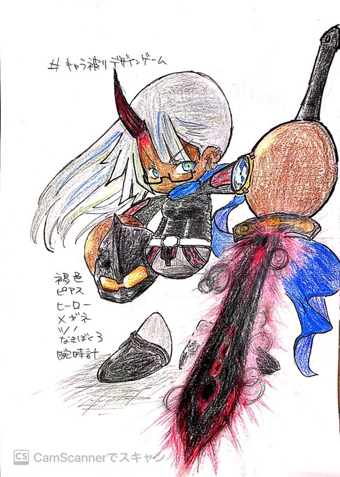 遅ればせながら、すえさん(@Sueeeet_108 )企画の #キャラ被りデザインゲーム のAチームに参加させていただきました〜 普段描かない属性描けて楽しかったです!!(pcがぶっ壊れてたのでアナログで申し訳ないです