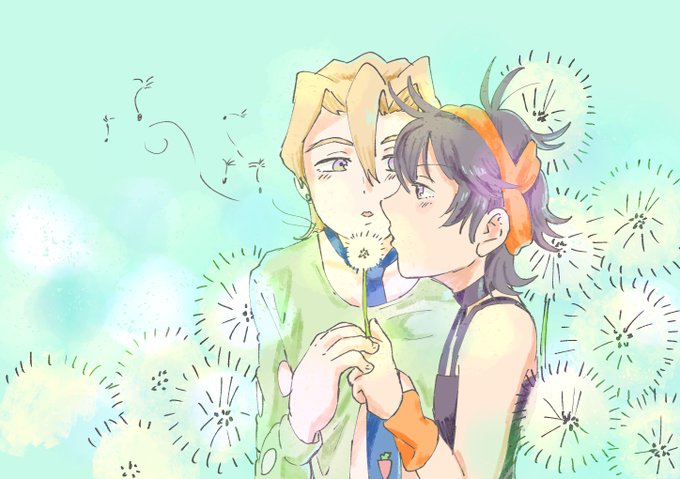 MiOさんのGW🍓🍊企画で描かせていただきました〜 グループ②の「植物」で参加させていただきます🙏 たんぽぽのわたげと🍓🍊 #🍓🍊と○○