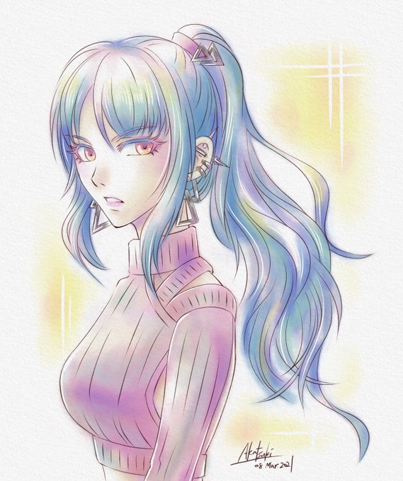 バストショットくらいの絵だと、アナログでサクッとラフ描いてデジタルで微調整してからペン入れして塗った方が断然フルデジタルより早かったという… この子は自分のオリジナルキャラですが、以前描いたグラサマのリヴィ姉絵の構図変更の元になった絵なので似てます。 #イラスト #オリジナル