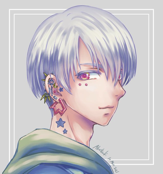 暗い髪色だとグラサマのルアンさまっぽくなるかなと思って、ふと資料にあった銀髪の描き方試してみた子です。 最初に普段あまり描かないしバランス良いかなと青目にしようとしたら五条先生感が出ちゃったので急遽赤目に変更しました。 五条先生と狗巻先輩は後日描きます。 #イラスト #オリジナル