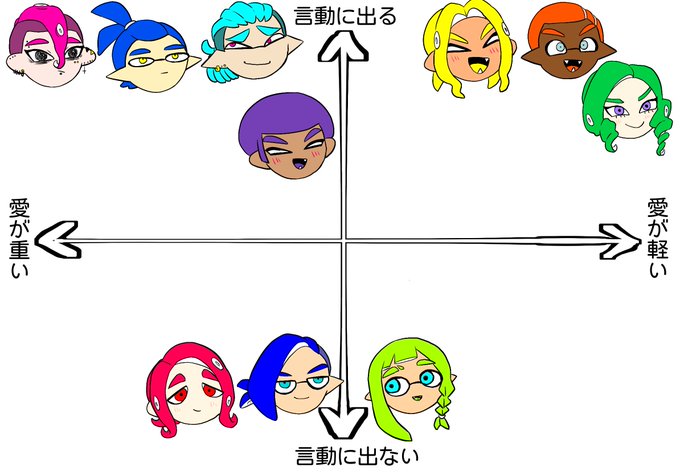 ブキとギア ①ヤマダ ②よしのり ③イワクラ ④ゆきお