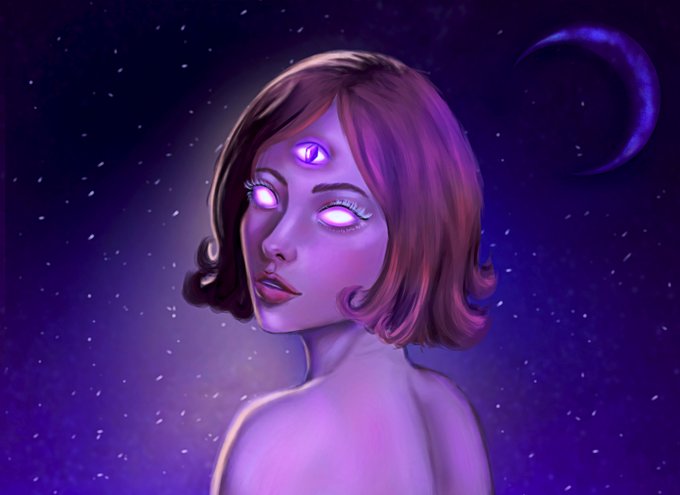 #PortfolioDay Hi! I am pretty new to digital art, and these are the few paintings I've made so far. I guess I like to use purple and blue tones a lot 🌺