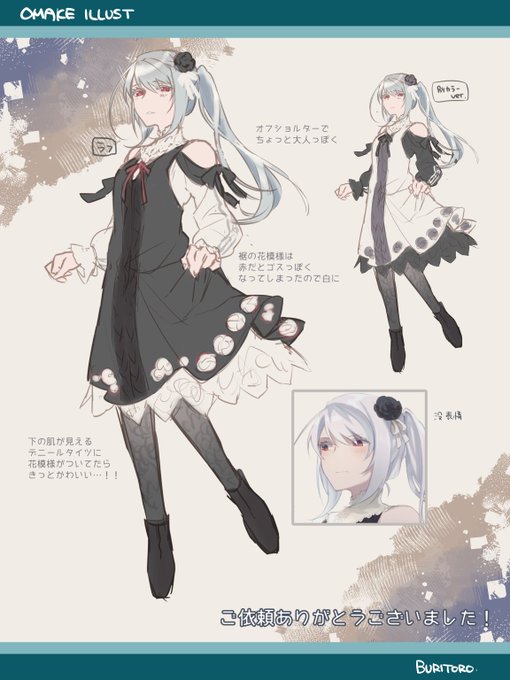 この前頼んだおまけイラストのラフ画の別バージョンのを発注したのですけど赤いカラーがスタイリッシュでオシャレな感じでこちらも素敵。絵師様ありがとうございました!
