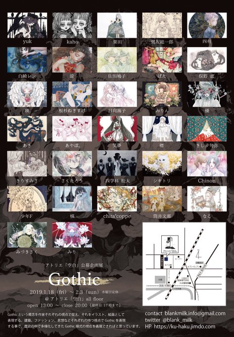 アトリエ「空白 」様の「Gothic展」に参加させていただきます。 私は新作4点を展示します。是非足を運んでみてくださいね🤗 物販はポストカードと、ドローイングがあります。 感想ノートも置いてありますので、感想お待ちしております〜! #公募企画Gothic