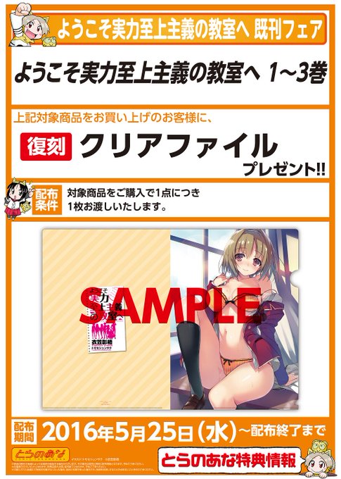 【再入荷情報】『ようこそ実力至上主義の教室へ 4』が本日再入荷致しました!特典の4Pリーフレットも配布継続中です。また「月刊アライブ 7月号」との同時購入フェアと既刊フェアのどちらも開催中!買い逃してしまったお客様は、ぜひ当店へ!!