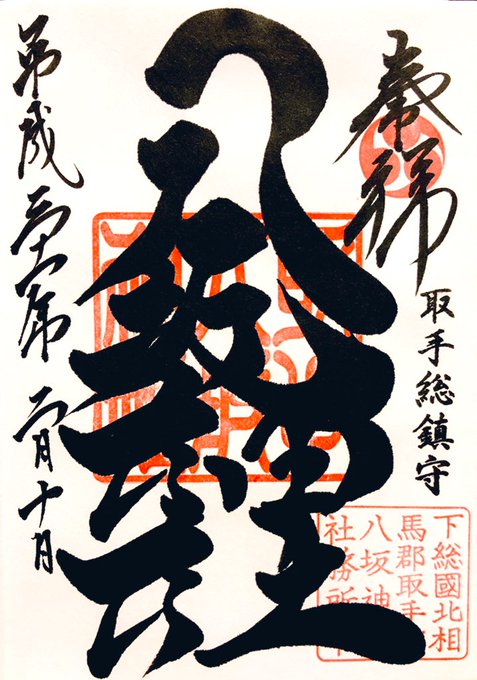 茨城県取手市東 鎮座✨取手総鎮守 旧村社 #八坂神社 御祭神 素盞鳴命✨牛頭天王社として寛永3年(1626)に創建した祇園信仰の神社✨鳥居は富士山が大噴火した宝永4年(1707)に建立されたものだそうで す✨力強い 墨書きの御朱印は墨をたっぷり使うので乾くのに少し時間を要します(ˊᗜˋ*) ✨