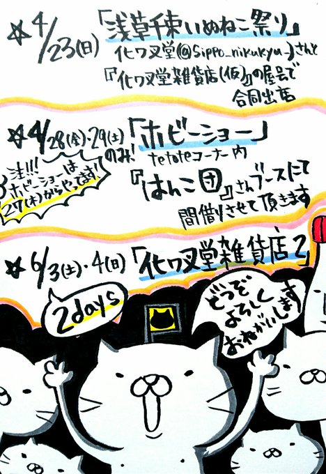 ●6/5㈰ 化ワ叉堂 詰め合わせ(浅草橋)●6/19㈰ としまねこマーケット(池袋)●7/16㈯~22㈮ 「ラブ・ラシー展」(原宿)