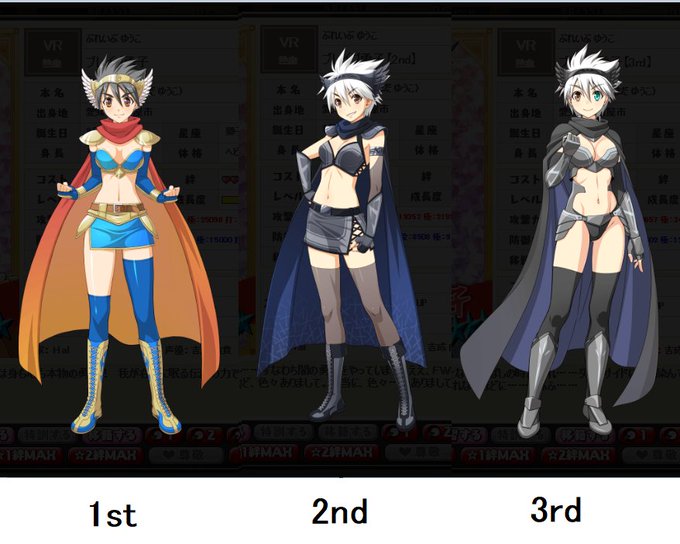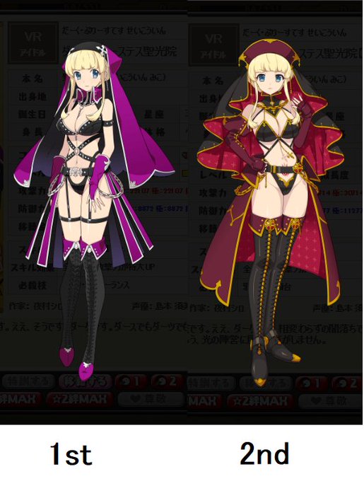 闇落ち前の聖光院は持って無いが(原点回帰出来るようにするか再配布して欲しいね) 勇者は徐々に勇者ぽさが薄れていきながら魔族化してる感じで聖光院は徐々に妖艶になっていってる感じなんだな #リンドリ