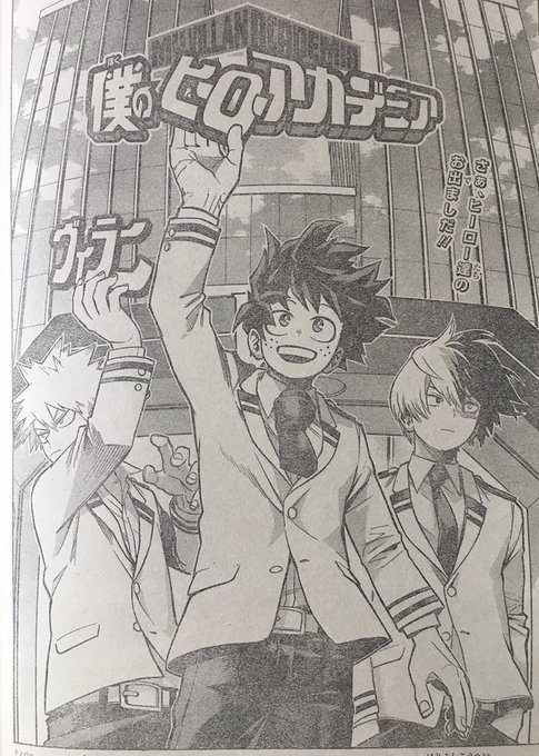 今週のジャンプのヒロアカ表紙。ジャンプのバトル漫画!って感じで最高にかっこいい!そして巻頭カラーのヒロアカ女子がみんな最高にかわいい! #僕のヒーローアカデミア