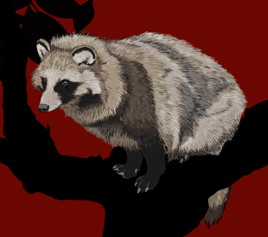 タヌキとキツネを描いてみて、動物の被毛の色は本当に複雑だと実感。陽の当たり具合で色も全然違って見える。そのまま忠実に描いていたら気が狂いそうなので、かなり短略化した。