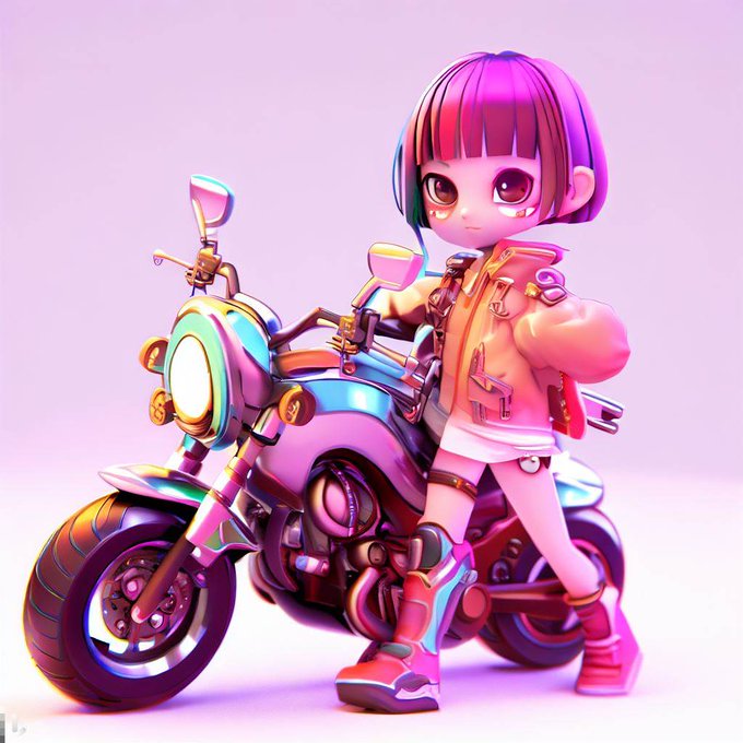 AIによくわからないデフォルメバイク絵を描かせるの割と好き(全部Bing Image Creater)。最後のは「バイクに跨ってエクスプロージョンしてるめぐみん」ってスクリプト書いたらバイクがエクスプロージョンしてたやつ #AIイラスト #AIart #AIアート