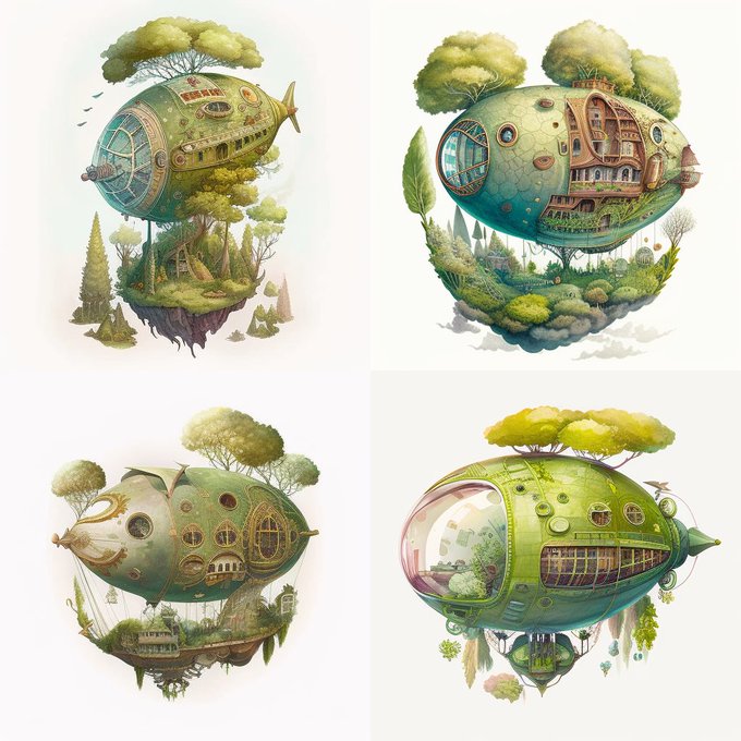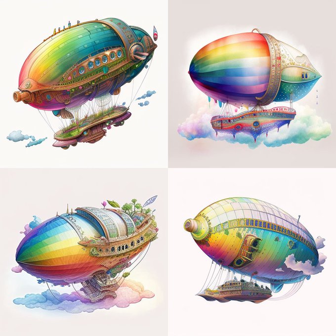 飛行船で錬成比較。 #midjourney