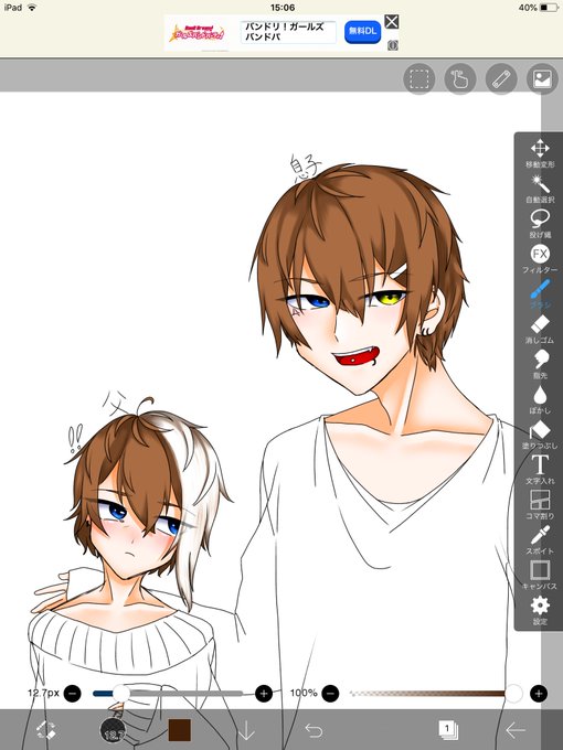 めちゃめちゃに描き途中だけど見て 父が絡まれているところに遭遇した息子が父を助けるんだけど完全に親子の立場が逆というかなんというか((