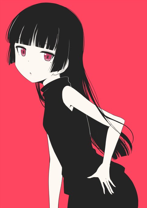 モノクローム・ハイコントラスト・ノースリーブ瑠璃先輩。なげえ。 #俺妹 #黒猫 #瑠璃先輩
