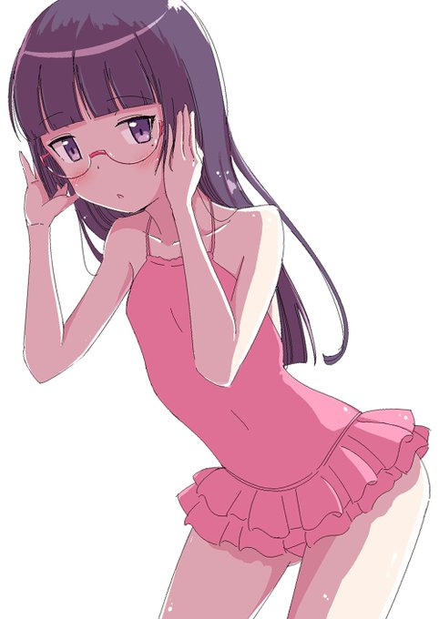 ワンドロよりお題だけ頂いて。 原作&俺猫プールデート回のピンクフリル水着・眼鏡添え。if世界線でも廻る夏の軌跡の中できっと着ているのだろうはず! #俺妹 #黒猫 #瑠璃先輩