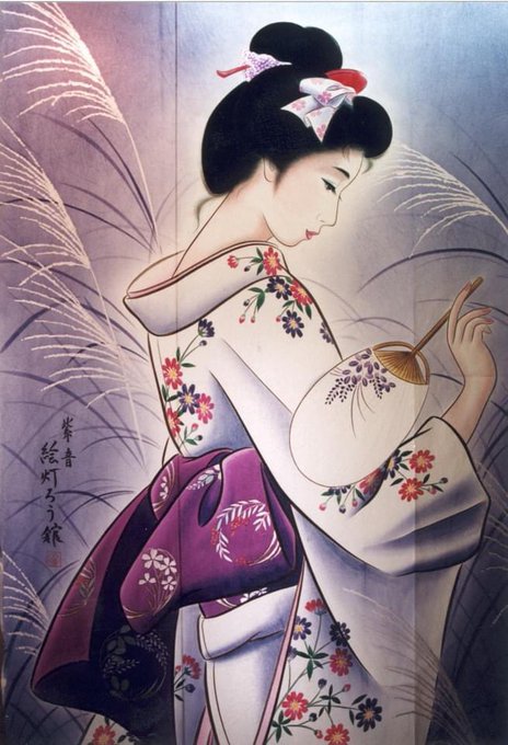 夕闇に映える、浮世絵や美人画が描かれた絵灯籠の色鮮やかで優美な灯りは人々を魅了します♪