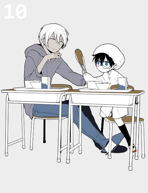 > コナンくんと給食を食べる安室さん
