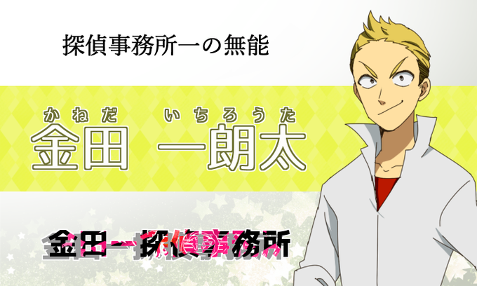 金田一朗太の設定やらなんやら。 皆に金田一って呼ばせようと努力していたけど、事務所メンバーは皆金田(かねだ)としか呼んでくれないので諦めた。