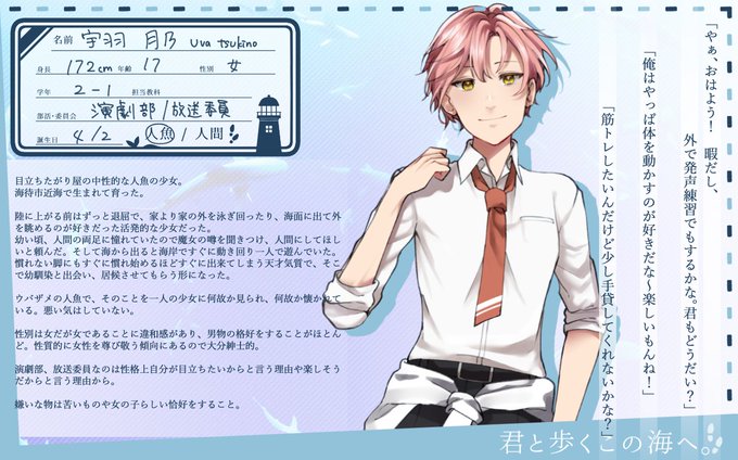 @Toko_s_TL 中性人魚です🦈事前で幼馴染関係いただいていますがそれ以外は特にないので良ければ仲良くしてください~!🙌 #とこ海_CS #とこ海_人魚 #とこ海_生徒 #とこ海_2年 #とこ海_演劇部 #とこ海_放送委員会