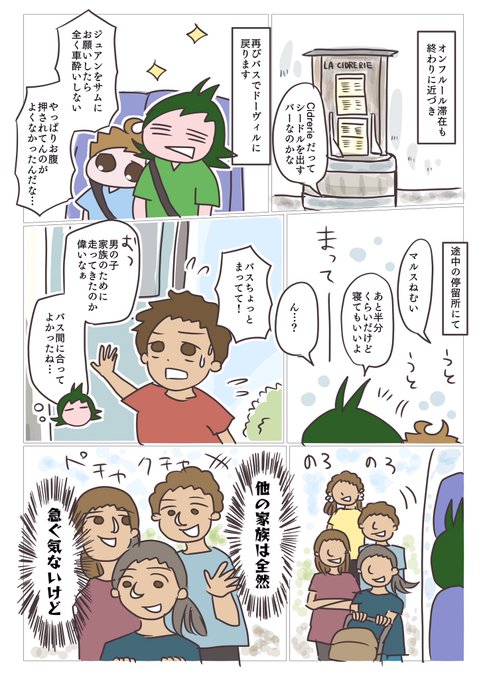 ドーヴィルへの帰り道。バスで途中の停車場から駆け込み乗車してきた家族が、ものすごいマイペースだった。