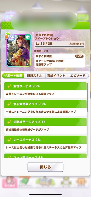 スイープトウショウのサポカ2枚目、きてくれた😊見返り美人✨✨✨
