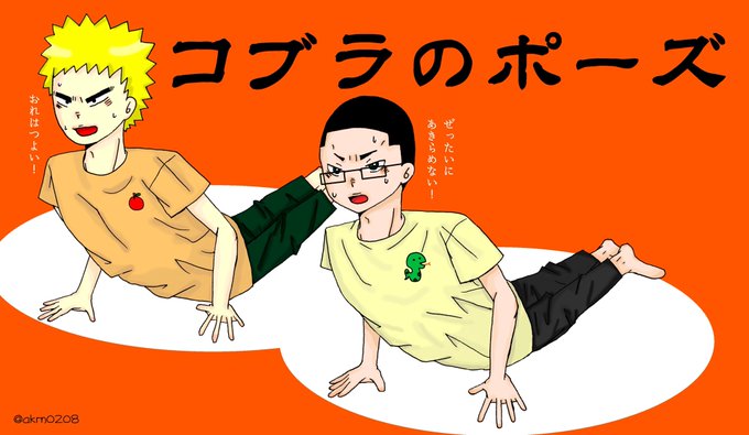 金城さんお誕生日おめでとう🎂🎊ということで第3回 #ヨガペダ はコブラのポーズ🐍隣はやっぱり福ちゃんかなと並べてみたら、ものすごく闘魂!って感じに🔥ふたりとも顔がまだ定まらず、最終手段の「台詞入れたらなんとかなるだろ」でした😂寝そべり難しい〜 #金城真護生誕祭2019
