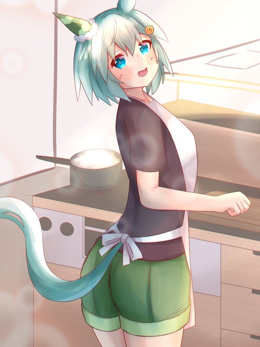 「これから朝ごはん作るとこですよ〜」 セイちゃんと一緒に朝ごはん作りたいね。お魚メインになりそう #ウマ娘 #セイウンスカイ