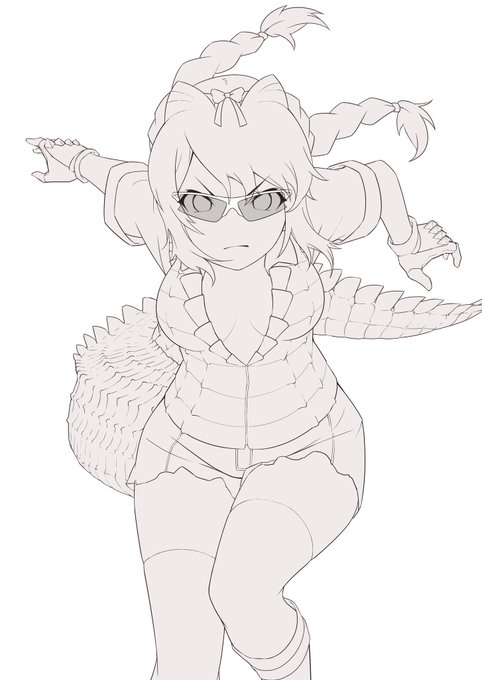 #けものフレンズ メガネカイマン線画…