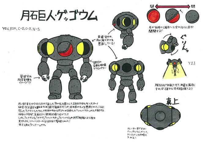 @gentlesasaki 「悪の女幹部」のサブ主人公の少年科学者と、月の石を改造して作り出された、ゲッゴウレムです!