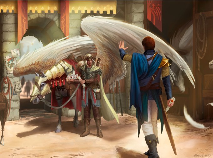 Altios, my OC, a pegasus mounted messenger who is forced to deliver a correspondence which leads him to join a group of mercenaries. #dnd
