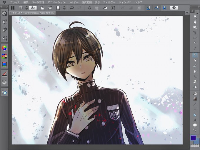 iPad Proに話題のクリスタ入れて描いたよ。 途中で気がついたんだけど、保存するにはクレジットかキャリア決算の登録が必要なんだねぇ... 課金防止してるから、この絵は消えて亡くなりました(チーン サヨナラ最原ちゃん...