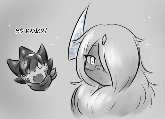 Névé the Ice Absol by an awesome friend on Discord! Aureolin pays the majestic creature a visit, bearing the gift of eyewear!