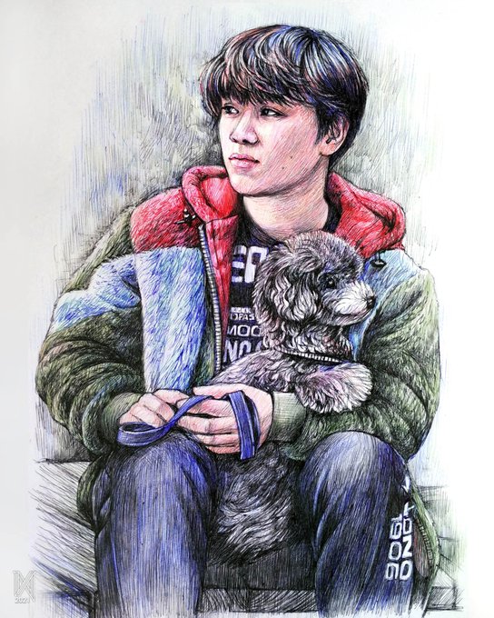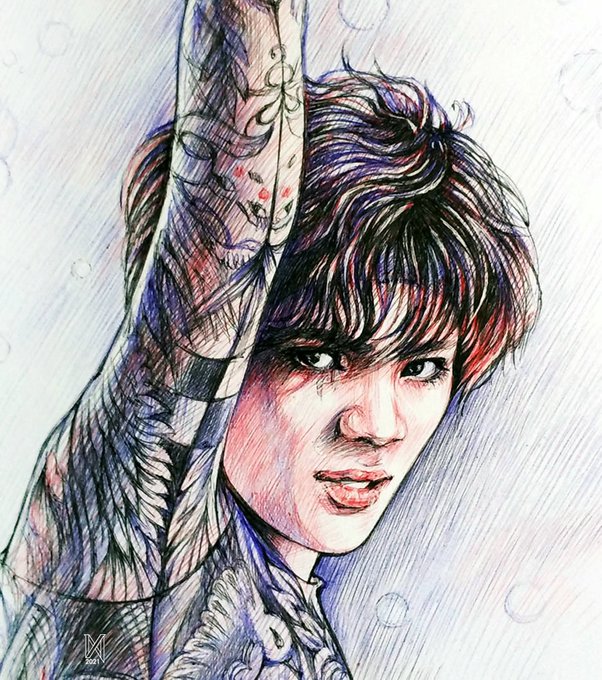 Colored pencils, black ballpoint pen, white gouache ✒🎨✏