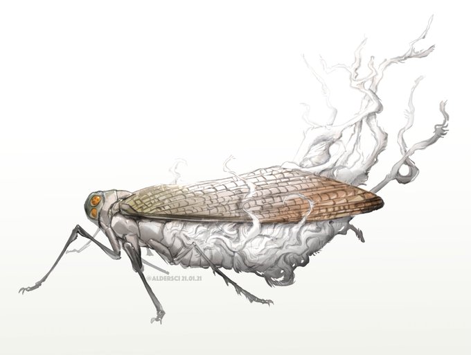 Colour sketch of a wax-tail hopper, Pterodictya reticularis! #SciArt #Entomology