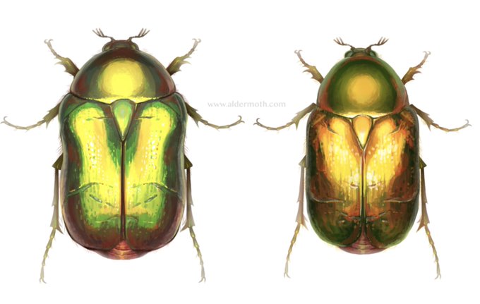 My illustration of some rose chafer beetles (Cetonia aurata)!