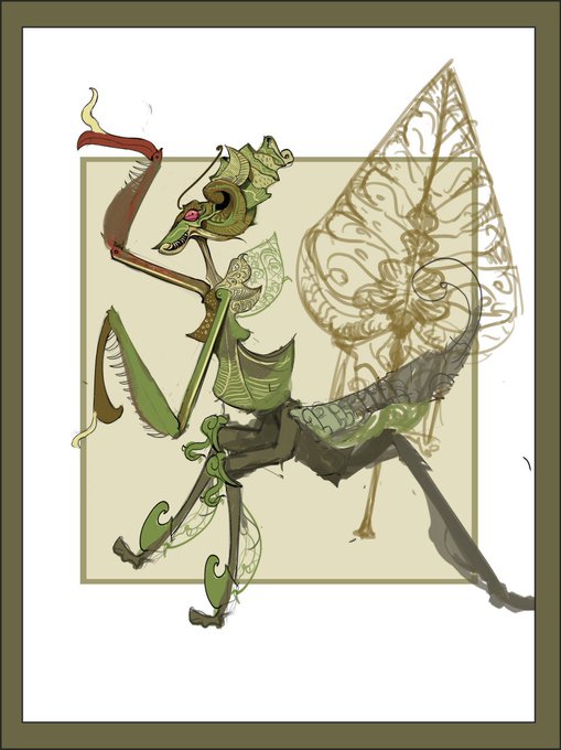 Scrolling through old art, I forgot I was supposed to finish this Mantis wayang for my uncle years ago.. I really should pick this up again