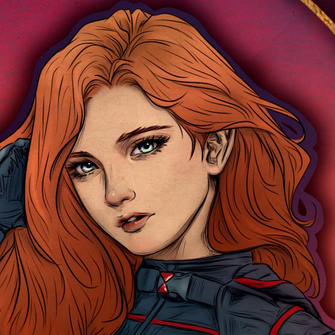 Blue M. commissioned me to draw their friend cosplaying Natasha Romanoff 🕷️ Black Widow as a tarot card. Loved their proposal! 🖤