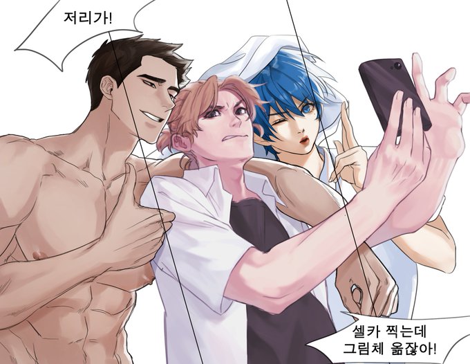 가운데 파이님 오른쪽 뇸뇸님이랑 셋이서 이메렛수 맨 왼쪽이 내 캐인데 못생긴설정이라 진짜 개못생겼따..
