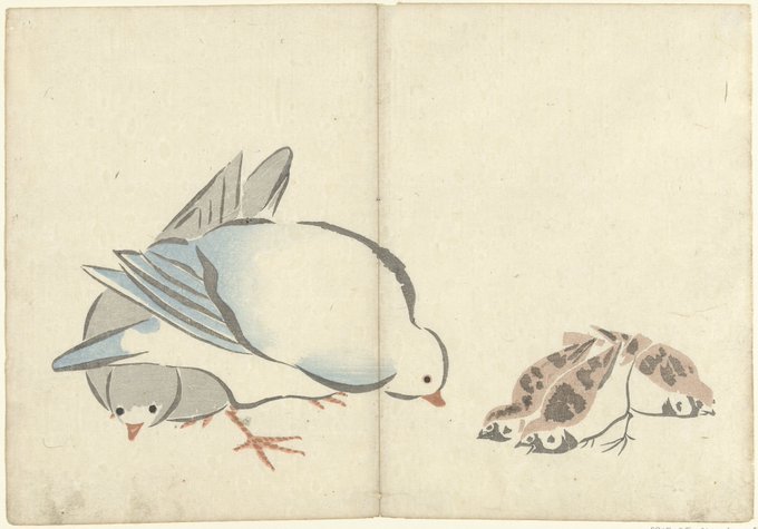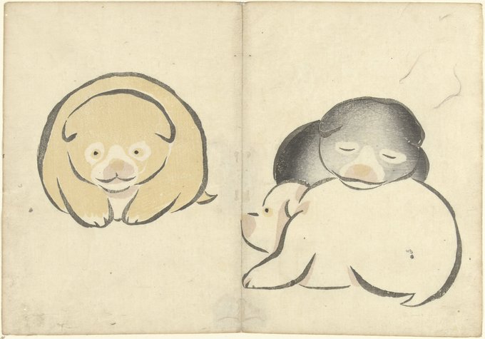 Nakamura Hochu, 1826: Five Plovers and Waves; Pigeons and Sparrows; Three Young Dogs