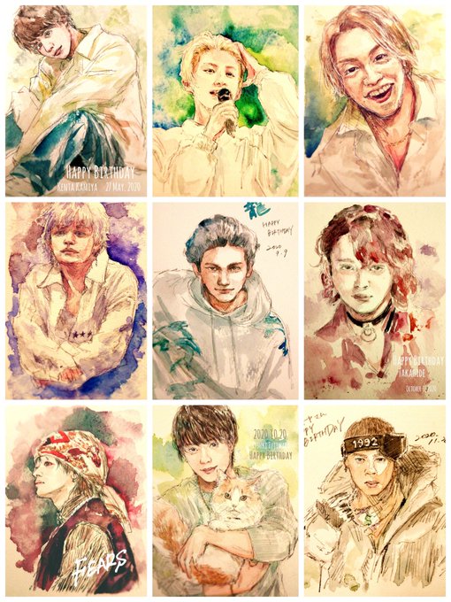 RAMPAGE誕生日絵、 ほくちゃんと けんたむからは連続で祝えたけど 全員描けてないので 来年こそは…………!
