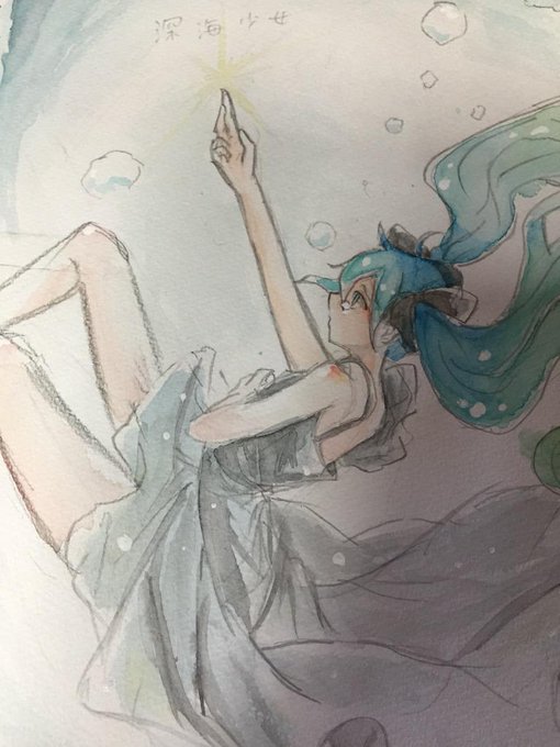 だいぶ前に描いてた深海少女発見。 神の塗り方は好きだけど、手足の長さが異常で思わず笑った